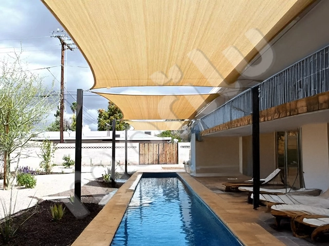 Kullanım Alanları: Tekne ve Havuz Gölgeliği – 95lik 140 gram/m2 – Krem modelimiz; havuz kenarları, özel tekne iskeleleri, yat kulüpleri, deniz kıyısındaki tesisler, otel plaj alanları ve villa havuz çevreleri için uygundur.